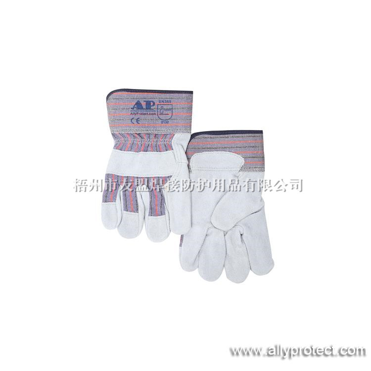 該款手套掌位部分采用耐磨、抗穿插的原色牛二層皮制成,質(zhì)地厚實且柔軟舒適,抗穿插及內(nèi)磨程度均勻;