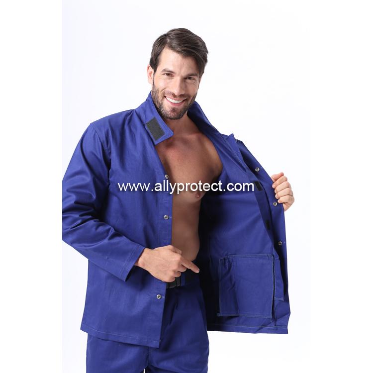- 產(chǎn)品描述: 藍(lán)色防火阻燃服,可水洗不縮水,推薦適用于燒焊、鑄造、化工、石油、機(jī)電等有火焰或火警的危險(xiǎn)行業(yè)。